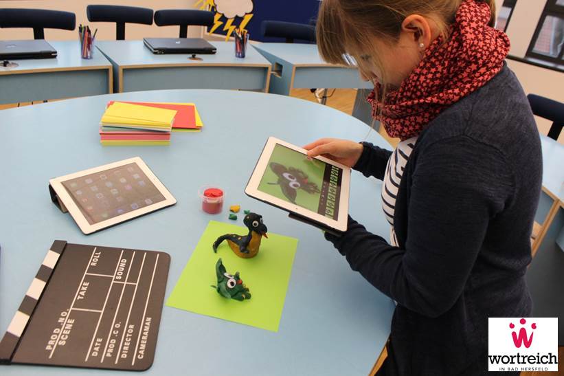 Stop Motion ist eine Filmtechnik, bei der einzelne Fotoaufnahmen aneinandergereiht werden und die Illusion eines bewegten Films entsteht. Im Workshop werden Ideen gesammelt und ein Konzept z.B. mit Hilfe der Kreativitätstechnik Mindmap erarbeitet. Zur Inspiration dient auch die wortreich-Erlebnisausstellung. Eigenständig erstellen danach die Teilnehmer Bild für Bild eine Szene, die nachher auf den iPads in Bewegung gesetzt wird. Kreative Einfälle zu dem, was zwischen den Fotos geschieht, zaubern scheinbar unmögliche Geschehnisse auf den Bildschirm. Höhepunkt des 2,5 stündigen Workshops ist das Ansehen der entstandenen Filme. Die Teilnehmer arbeiten in Kleingruppen (2-3 Personen). Gefördert werden u. a. Fähigkeiten wie Kreativität, Konzentration, Medien-kompetenz und Ausdauer.