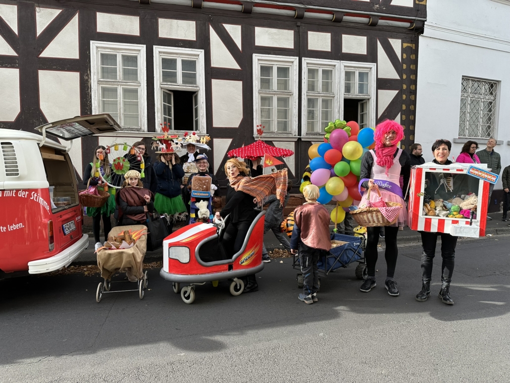 Das Motto des Lollsumzugs lautete in diesem Jahr: „Lullusfest 2023 – wir freuen uns auf …“. Und genau das verkörperte das Team des wortreich. Kostüme, die an die Fahrgeschäfte beim Lolls erinnern, wie das Riesenrad, ein Autoscooter oder Kettenkarussell aber auch das leibliche Wohl auf dem Feste stand im Vordergrund. Für den Spaß der BesucherInnen sorgten zwei Lo(ll)sfeen und eine Lo(ll)sbude, bei denen während des Umzugs Lose gezogen werden konnten. Das wortreich brennt für den Lollsumzug und das Lollsfeuer brennt für Bad Hersfeld und das Lullusfest. Natürlich dürfte deswegen auch die Adaption des Lollsfeuers in der Gestaltung des Festzugsbeitrags nicht fehlen.