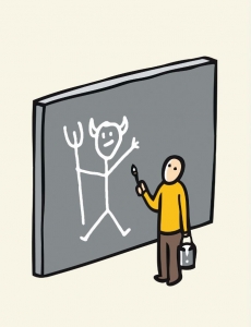 Beispiel: „Da hat wohl jemand an der Dialektekarte richtig geraten. Ich kenne mich mit Dialekten gar nicht aus!“ – „Mal nicht den Teufel an die Wand; wir werden gleich gemeinsam unser Wissen testen!“