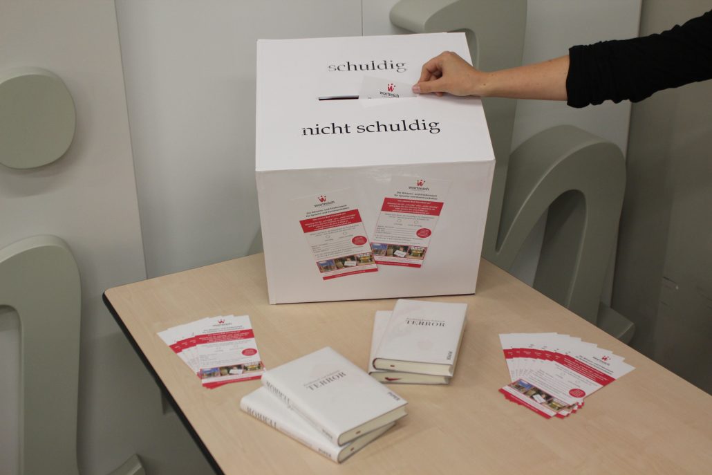 Im Rahmen der Aktion „Bad Hersfeld liest ein Buch“ wurde im wortreich in Bad Hersfeld abgestimmt. Ist der Protagonist „Lars Koch“ im Theaterstück „Terror“ von Ferdinand v. Schirach schuldig zu sprechen, 164 Menschen getötet zu haben, um damit 70.000 Menschenleben zu retten, oder nicht?