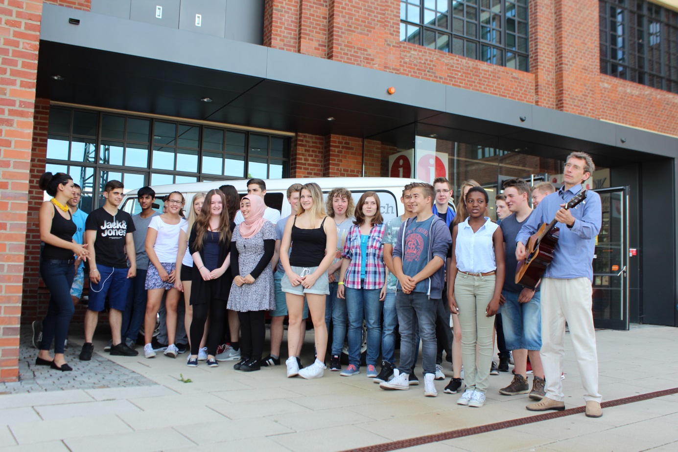 Das Gelernte hat die Klasse gleich umgesetzt und einen tollen wortreich-Song geschrieben, den sie bei sonnigem Wetter dem wortreich-Team vorgesungen haben. Den Song können Sie sich gleich hier anhören:
