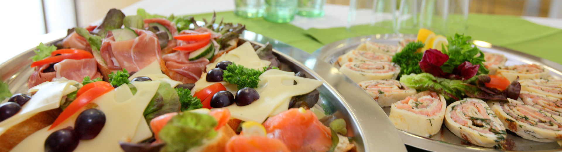 - Auswahl an Fingerfood und Getränken in der Ausstellung