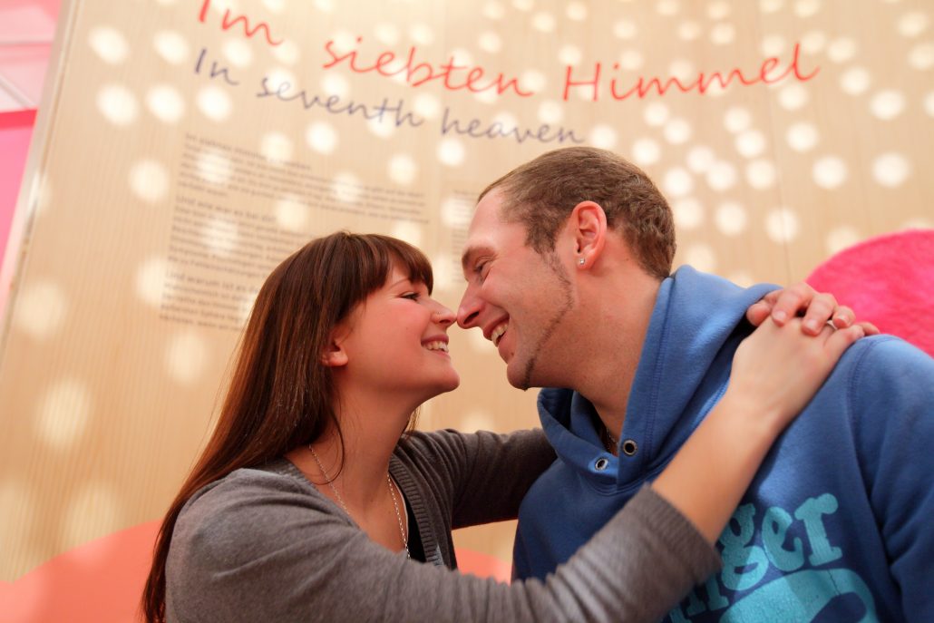 Wie fühlt es sich an, frisch verliebt zu sein und auf Wolke sieben zu schweben? Wie funktioniert Kommunikation in Partnerschaften? Gehört gleich und gleich zusammen oder ziehen sich doch Gegensätze an: Bei der Ausstellung der Wissens- und Erlebniswelt für Sprache und Kommunikation dreht sich alles um die Liebe und die zwischenmenschliche Kommunikation. Die interaktiven Exponate laden zum Erleben, Staunen und Begreifen der zwischenmenschlichen Kommunikation ein. Die Ausstellung besteht aus 18 Exponaten, 13 Themenwänden und fünf Rotunden und kann auf 300m² präsentiert werden.